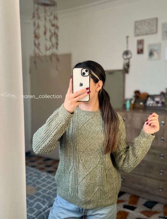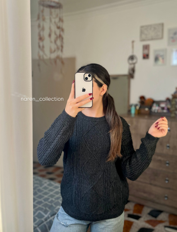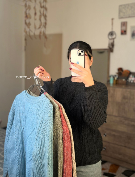 •بلوز بافت یقه گرد آستین مارپیچ
